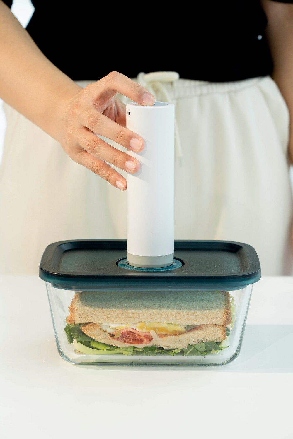 ¡Así de fácil! Solo coloca la bomba, presiona un botón, y listo. Sellado automático al instante. Ya no necesitas complicarte con sistemas tradicionales. Un proceso sin esfuerzo para mantener tus alimentos frescos, sin ningún trabajo extra. ¡Comer bien nunca fue tan sencillo!